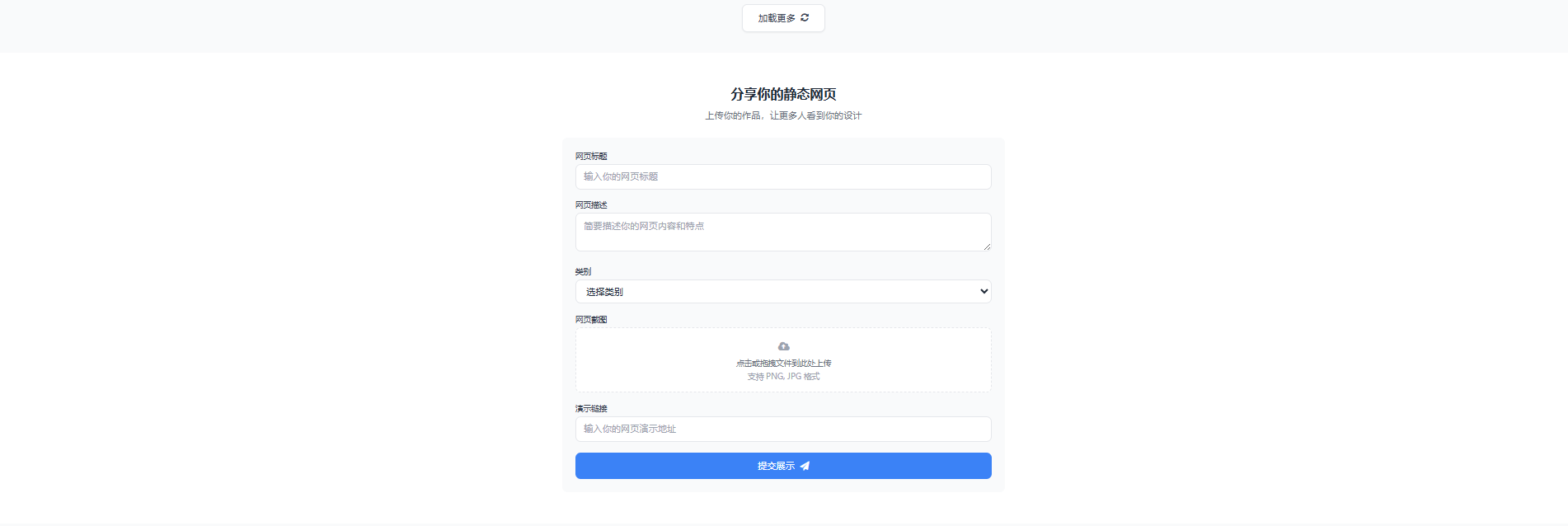 - 上传表单:包含标题、描述、类别、截图上传、演示链接五要素