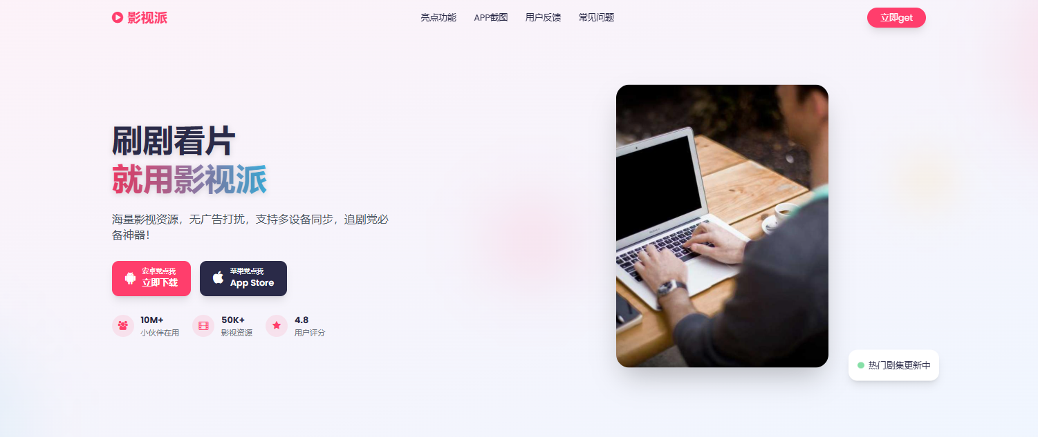 专为年轻追剧党打造的刷剧神器影视派APP宣传页,提供多平台下载与丰富影视资源。