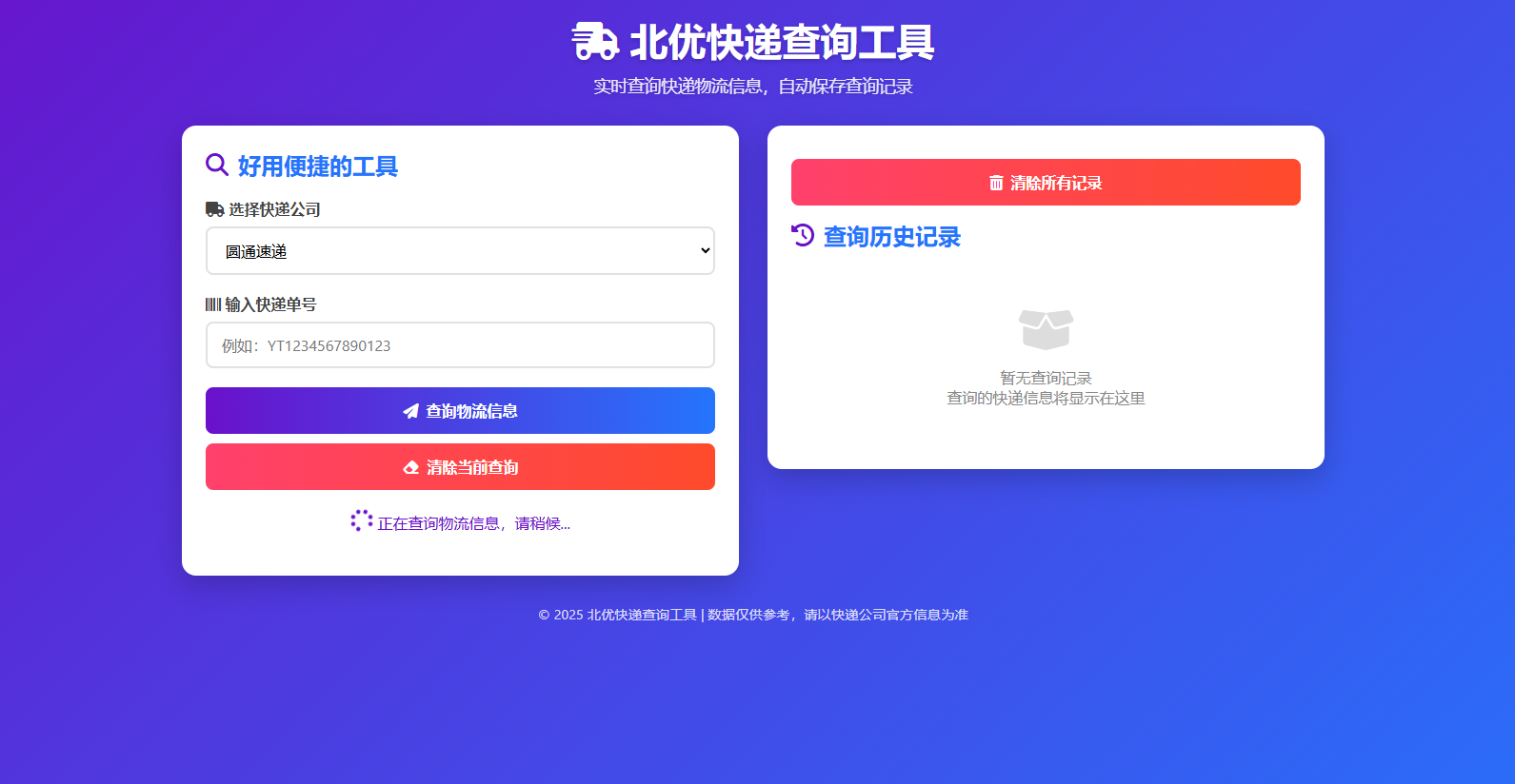 该工具通过简洁直观的界面和稳定的功能,有效解决了用户查询快递时需要频繁切换平台、手动记录单号等痛点,同时为开发者提供了可复用的前端实现方案。