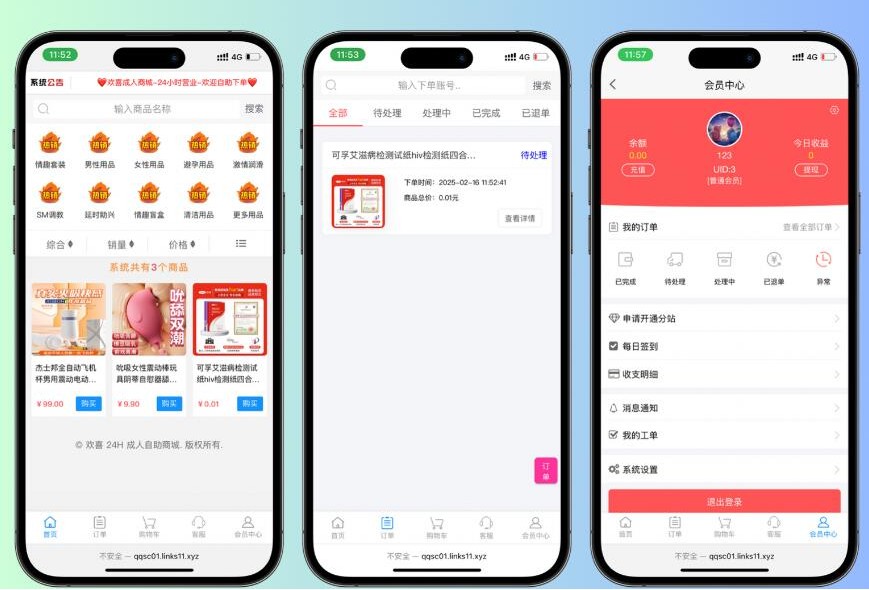 该成人情趣商城系统基于彩虹发卡程序开发,功能丰富,支持以下特性: