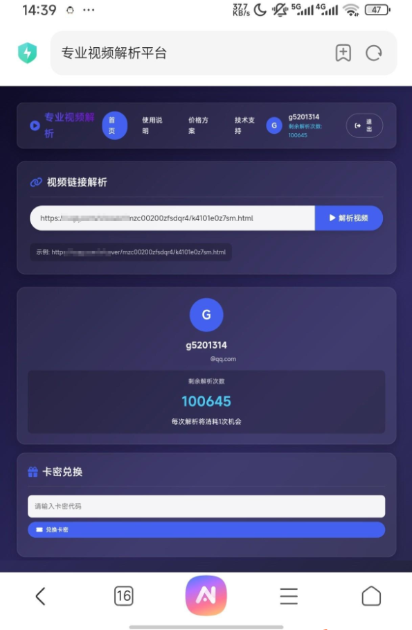 - 次数管理:精确记录解析次数消耗,支持用户购买解析次数。