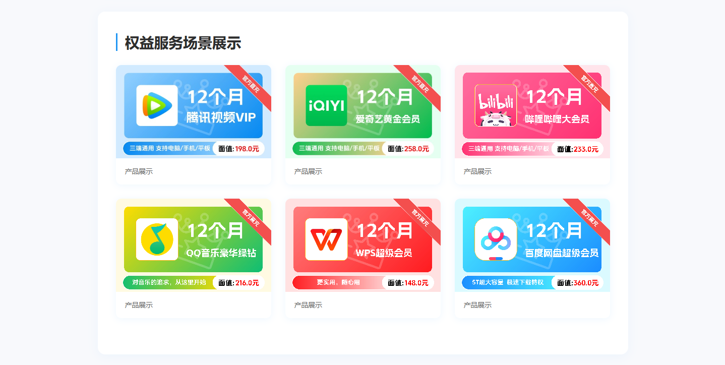 - 视频会员:腾讯视频、爱奇艺、优酷等