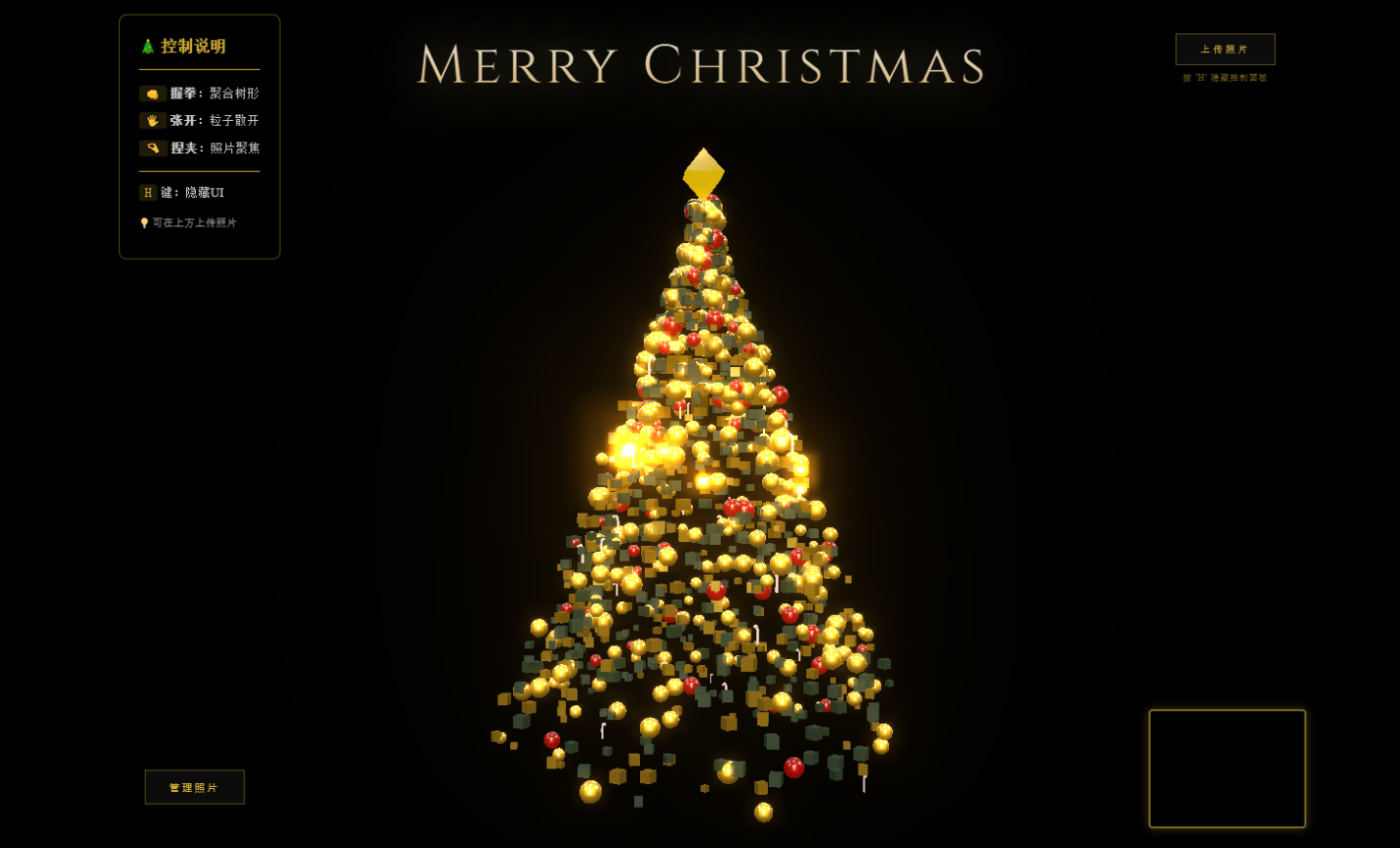 想拥有独特的元旦体验吗?这款基于HTML源码构建的页面别错过!它以元旦元素为设计灵感,运用HTML结合前沿技术,实现动态粒子特效与手势交互。握拳聚树、张手散花、捏夹聚焦照片,还能上传管理照片,无需复杂安装,浏览器即开即玩!