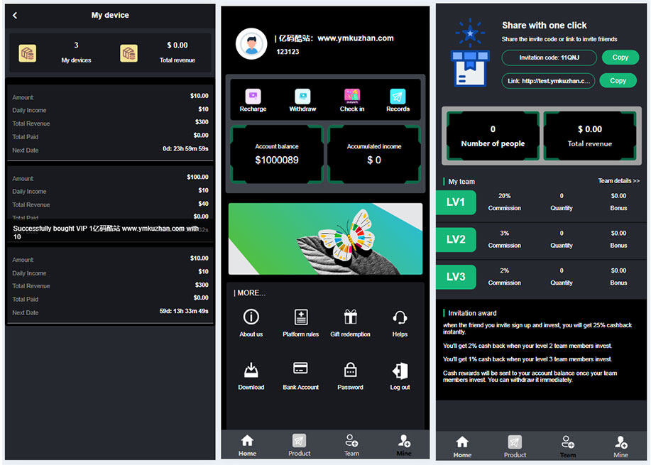 - 多级推荐系统:采用 3 级推荐奖励机制。