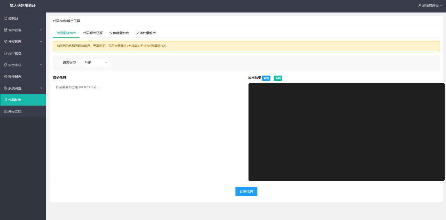 - 代码混淆加密:支持PHP/JavaScript代码的混淆加密,提升代码安全性。