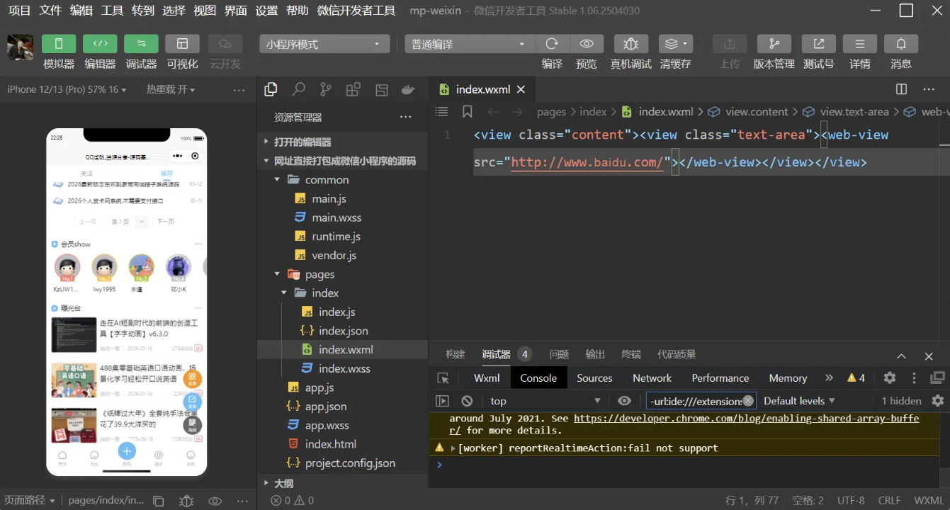 index.js中设置目标URL - 使用微信开发者工具导入项目