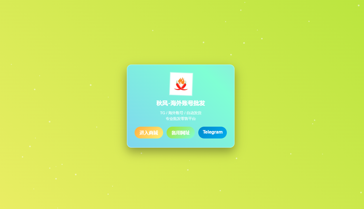 这款成品源码专为海外账号批发与跨境电商服务设计,具备动态七彩渐变背景、悬浮粒子特效与呼吸动画卡片。页面集成三大导航入口,响应式布局适配多端,无需二次开发,上传替换链接即可快速部署,适用于高转化率推广落地页。