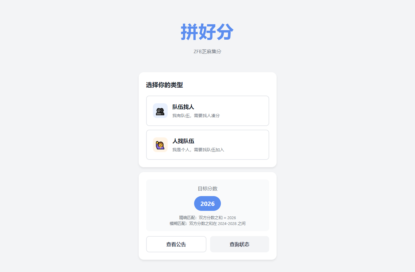 拼好分——支付宝芝麻集分活动匹配系统,快速匹配互助伙伴