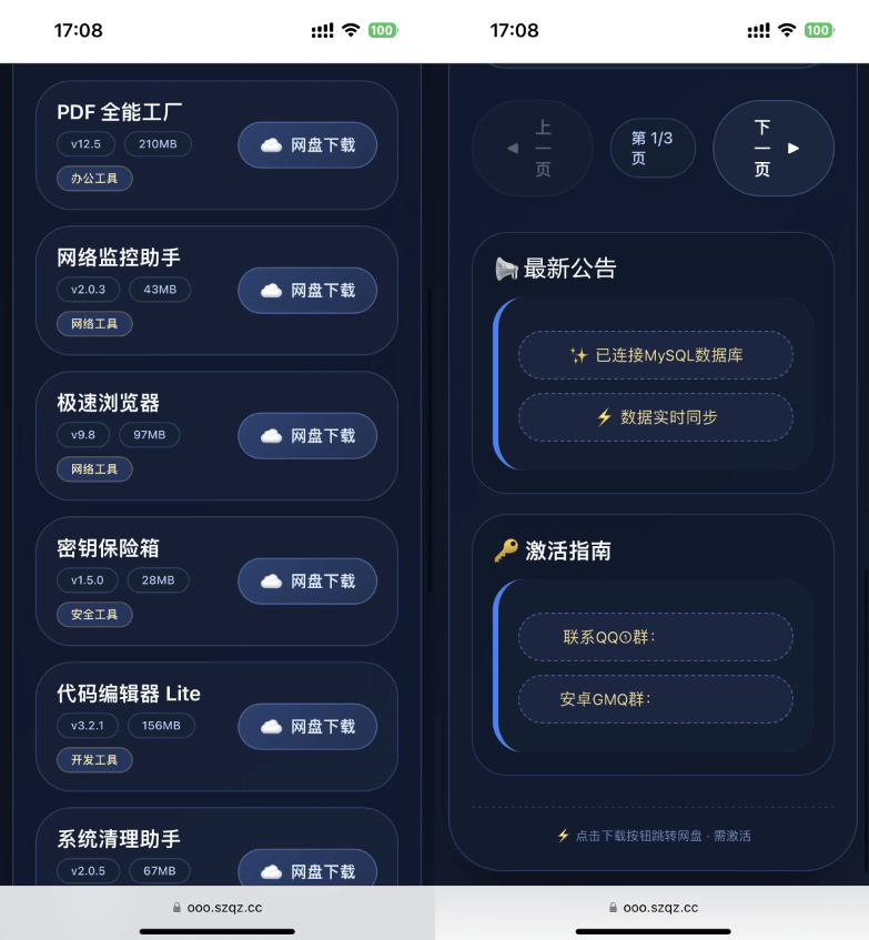 - 软件数据存储于 MySQL 数据库,前端实时读取并渲染为卡片列表。