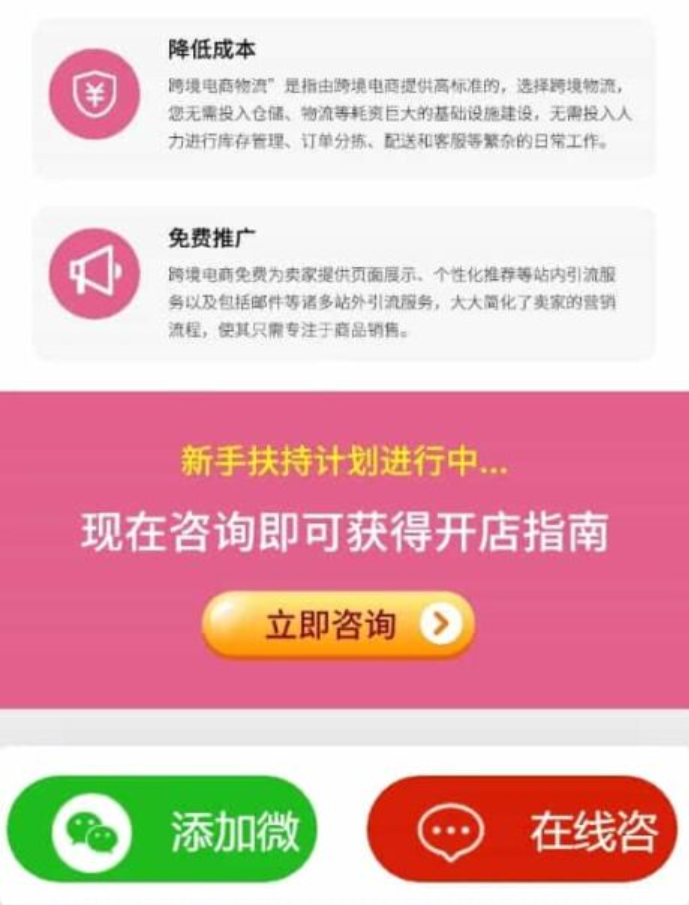 - 悬浮引导条:页面顶部设有悬浮广告条,可直接点击跳转咨询链接,引导用户转化。
