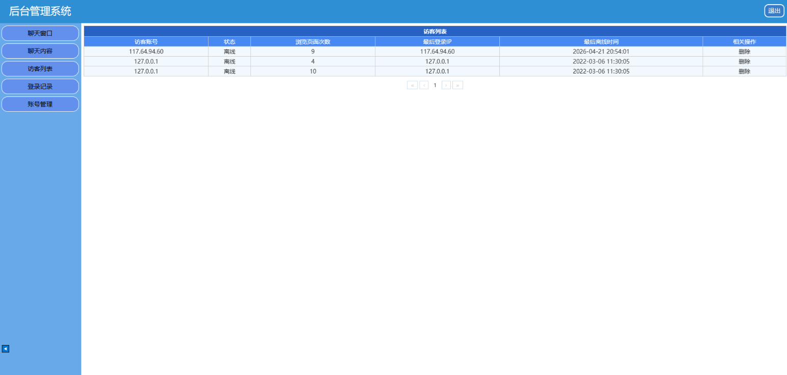 - 📶 后台可查看访客在线、离线、窗口隐藏状态