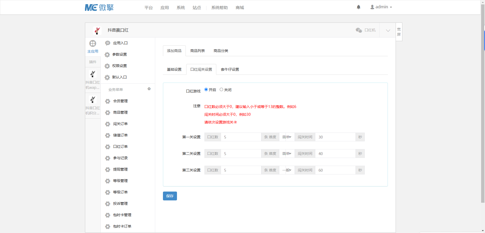 - 选择左边应用模块中的"抖音赢口红"进行相关配置