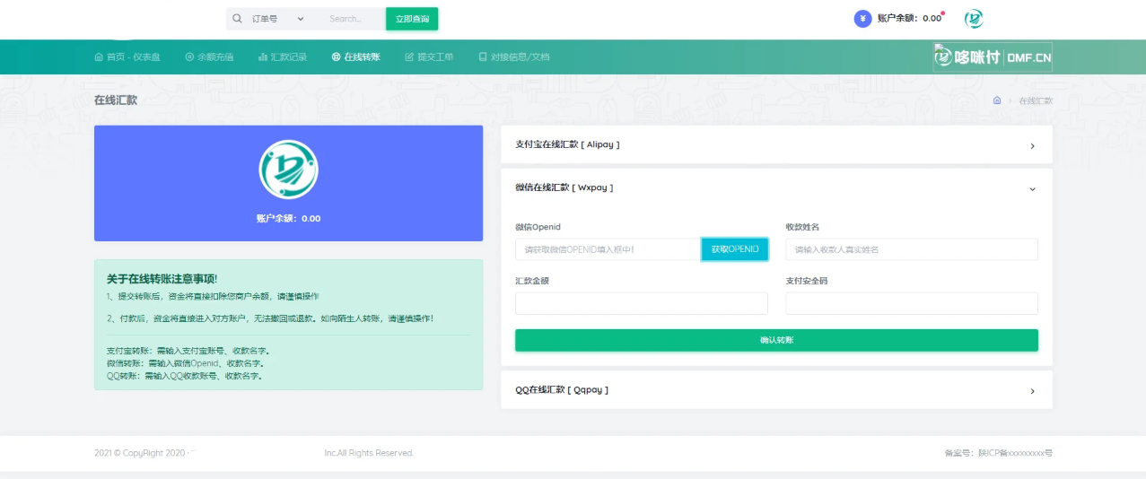 - 代付接口支持:支持支付宝、微信、QQ三网代付接口。
