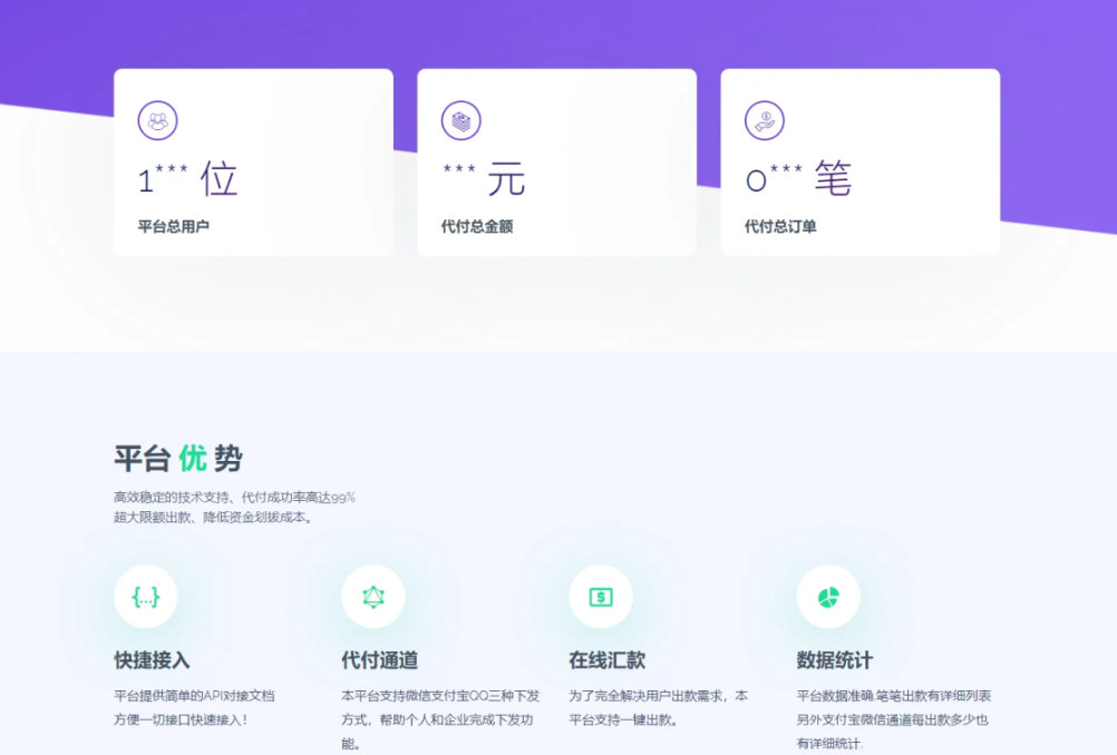 - 代付通道:支持微信、支付宝、QQ 三种下发方式,助力个人和企业完成下发功能。