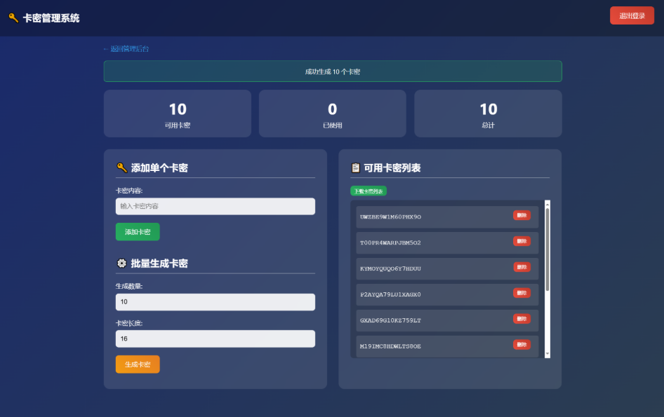 这款轻量化小号卡密分发系统源码,专为便捷分发小号账号与卡密打造。每个IP限领3次,有效防止恶意领取。系统经简易测试,运行稳定,操作简单,可快速部署使用,满足各类分发需求。