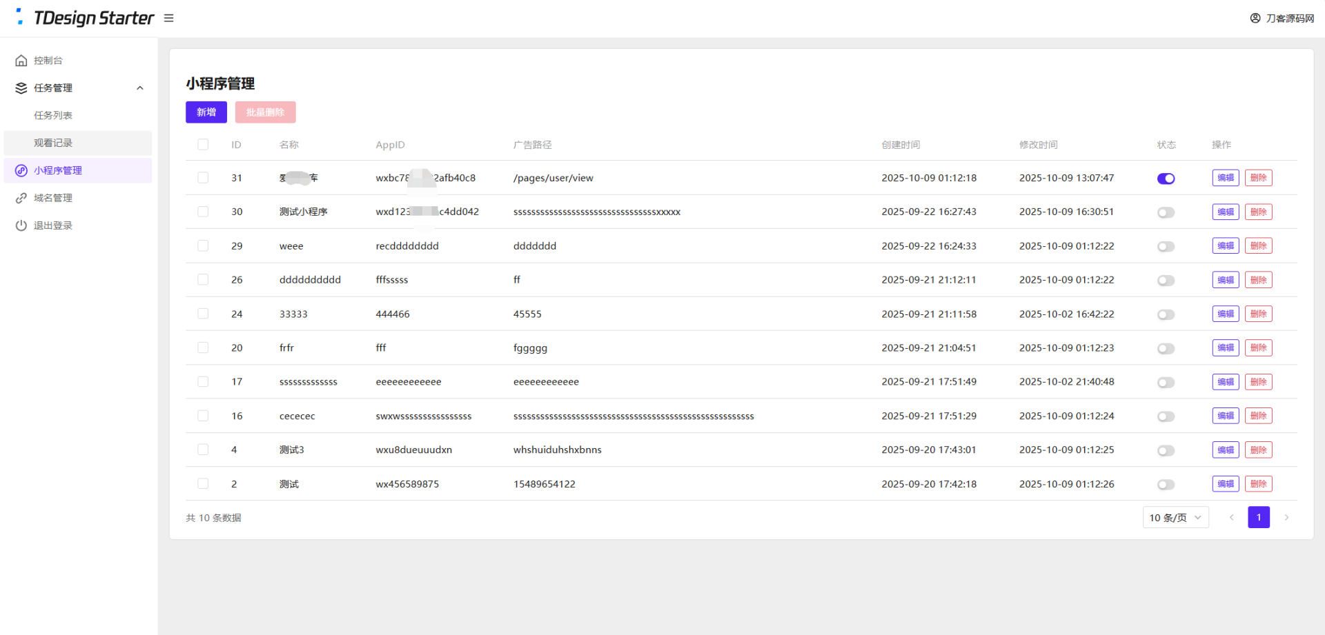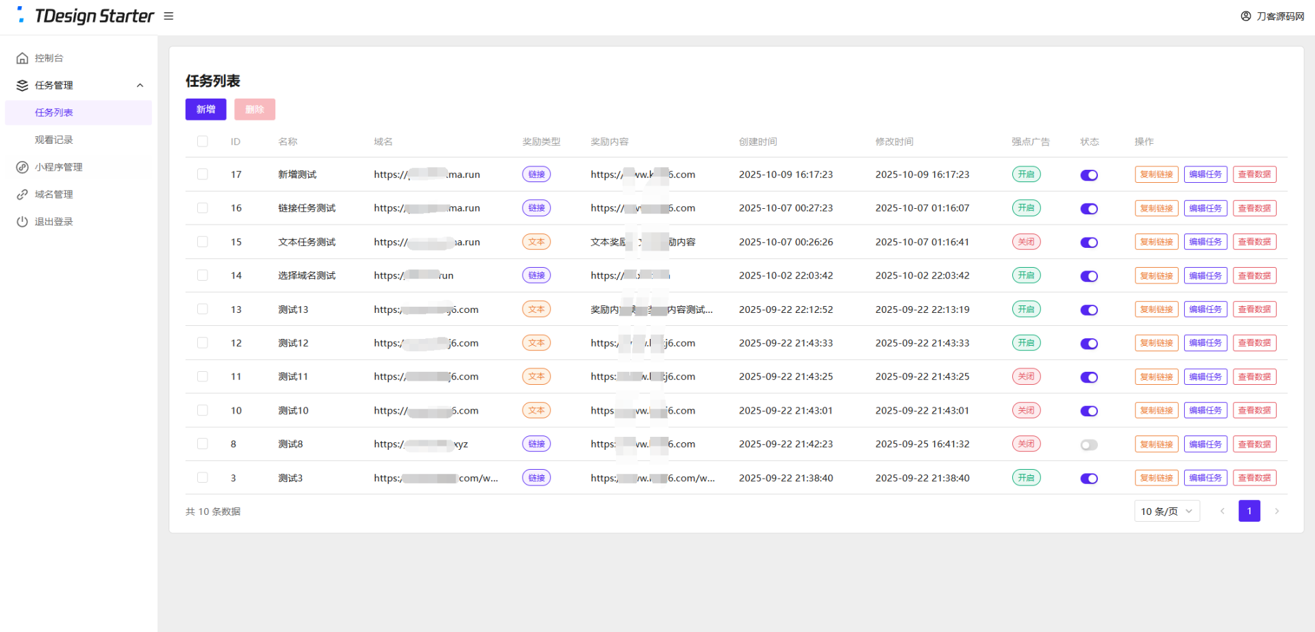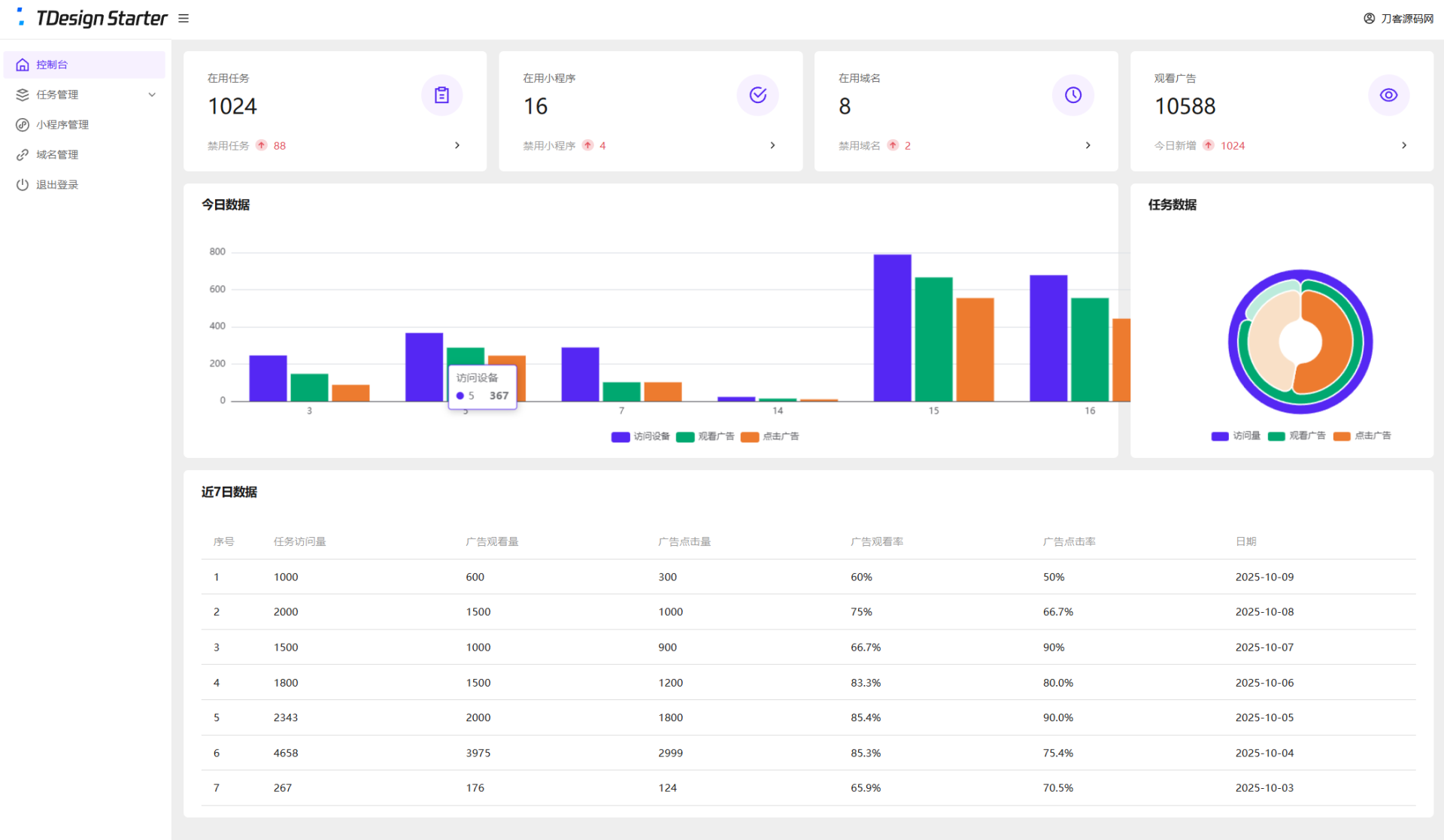 此开源系统集成接口管理、后台管理、任务单页与小程序。通过后台创建任务,分享链接引导用户在小程序看广告,借助微信官方广告等收入来源下发奖励,实现便捷流量广告变现与任务管理。
