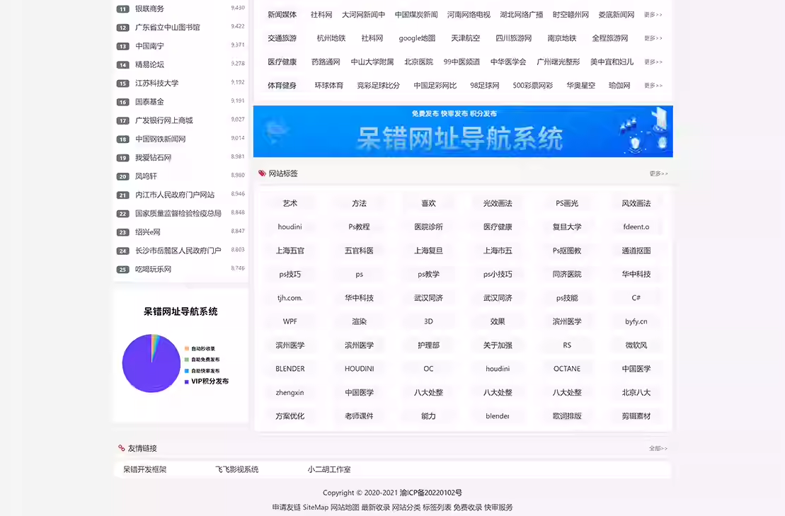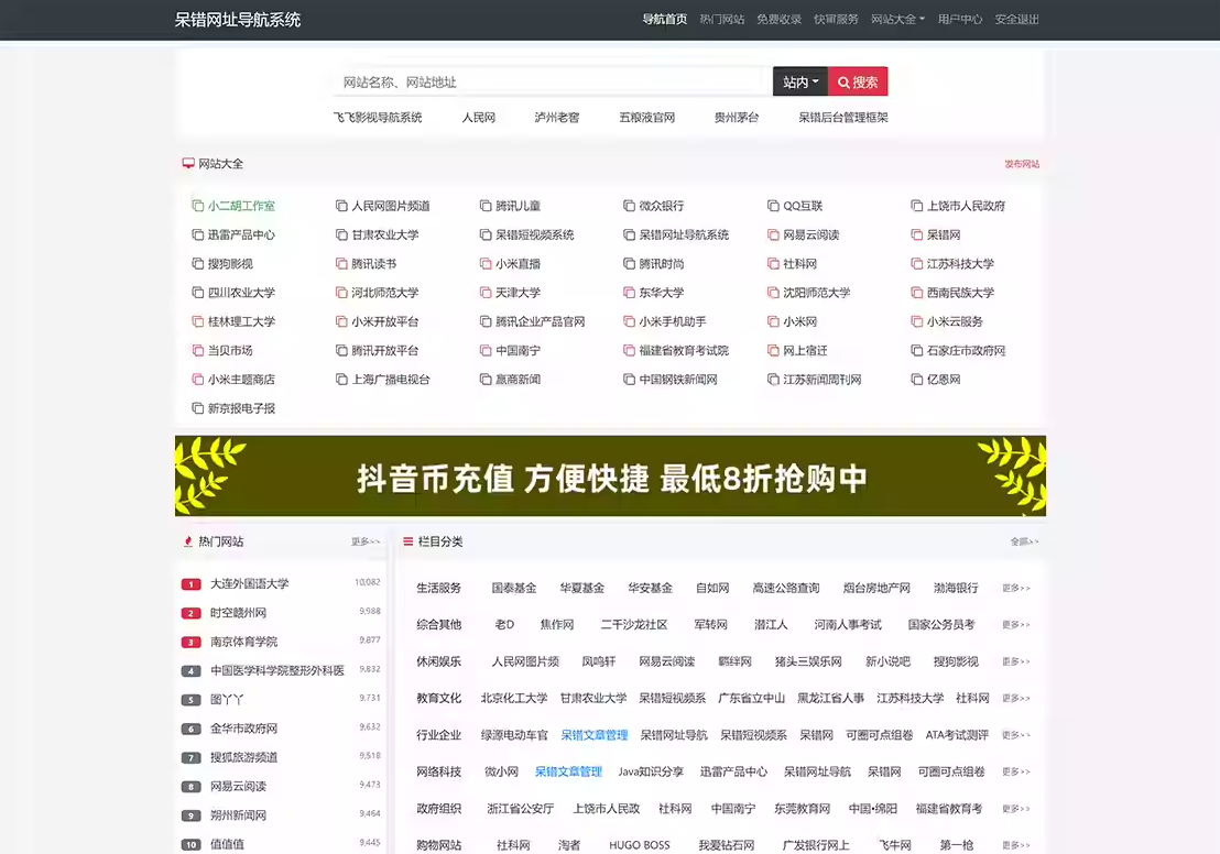 呆错网址网站在线导航系统 PHP 网站主题源码说明