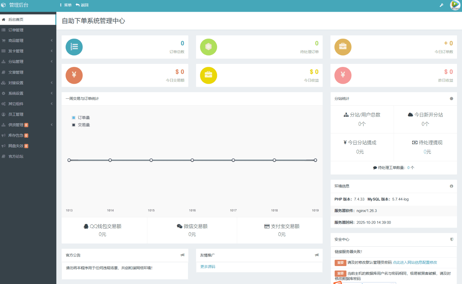 后台访问:使用您提供的默认账号(admin)和密码(123456)登录后台。为保障系统安全,登录后请务必立即修改默认密码。