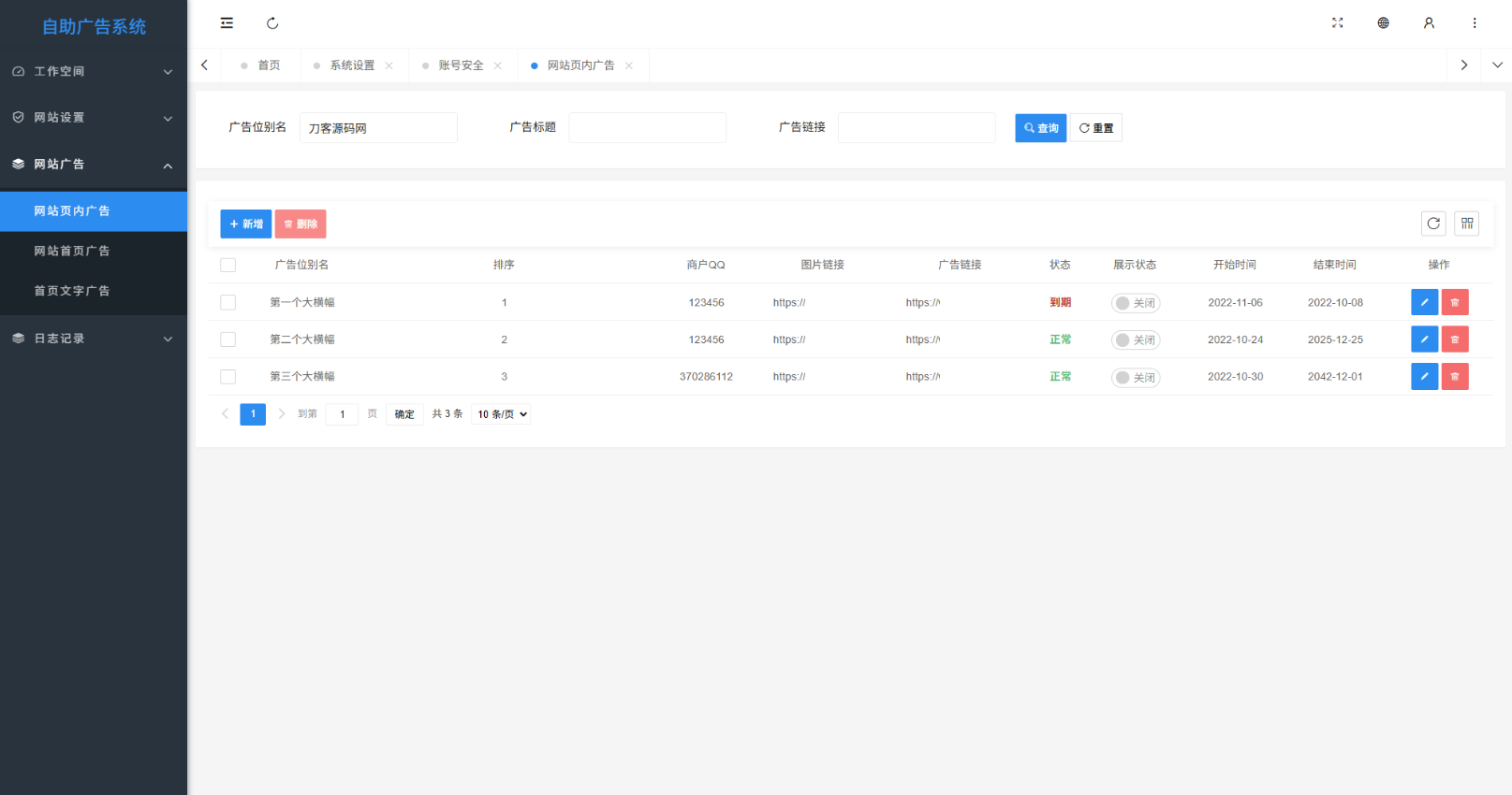 最新全开源网站自助广告投放系统源码及安装教程简介