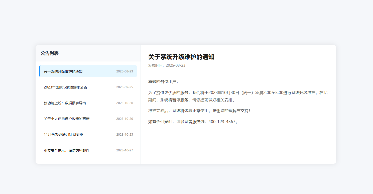 - 简洁现代设计:采用卡片式布局,清晰展示维护信息