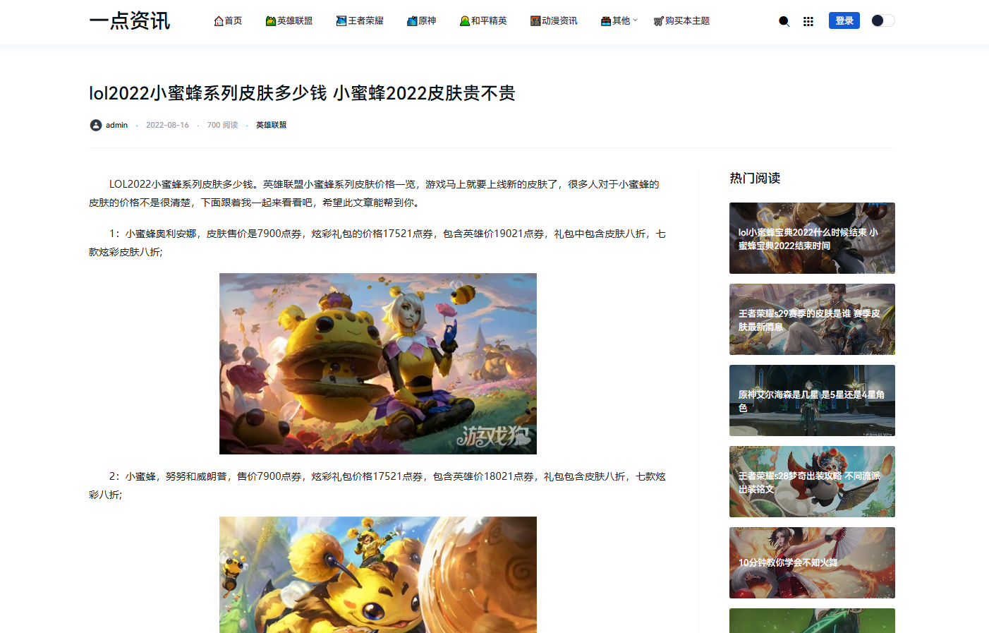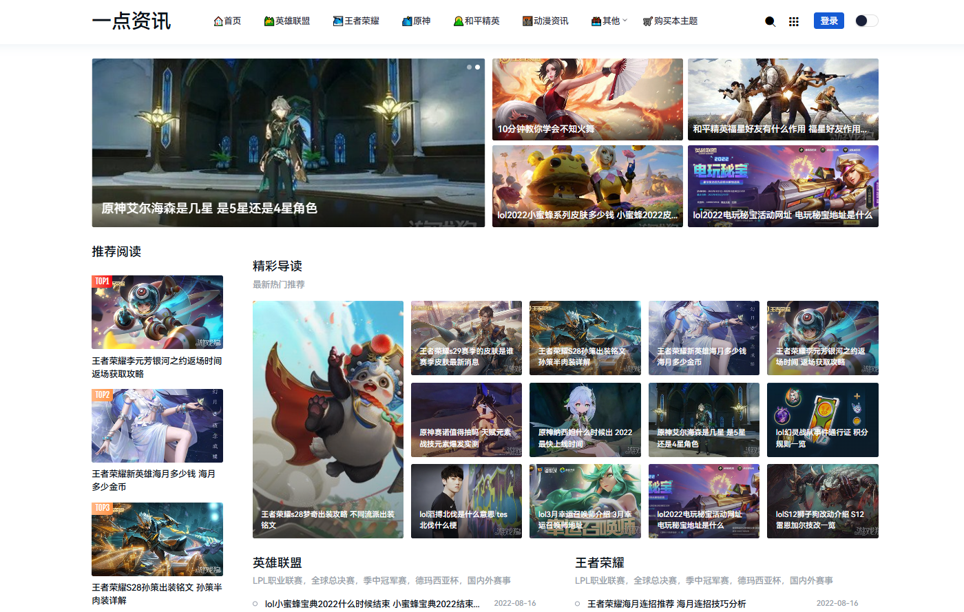 YK一点资讯(三栏 + 昼夜 + 自定义布局)主题模版,建议直接进入演示站观看效果。此模版非常适合用于搭建游戏攻略、新闻资讯类网站,也可作为CMS内容管理系统或图片站等使用。