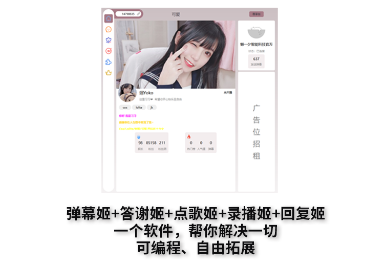 - 多姬合一:整合弹幕姬、答谢姬、点歌姬、回复姬,集成多种大模型 AI 与工作流(workflow)。