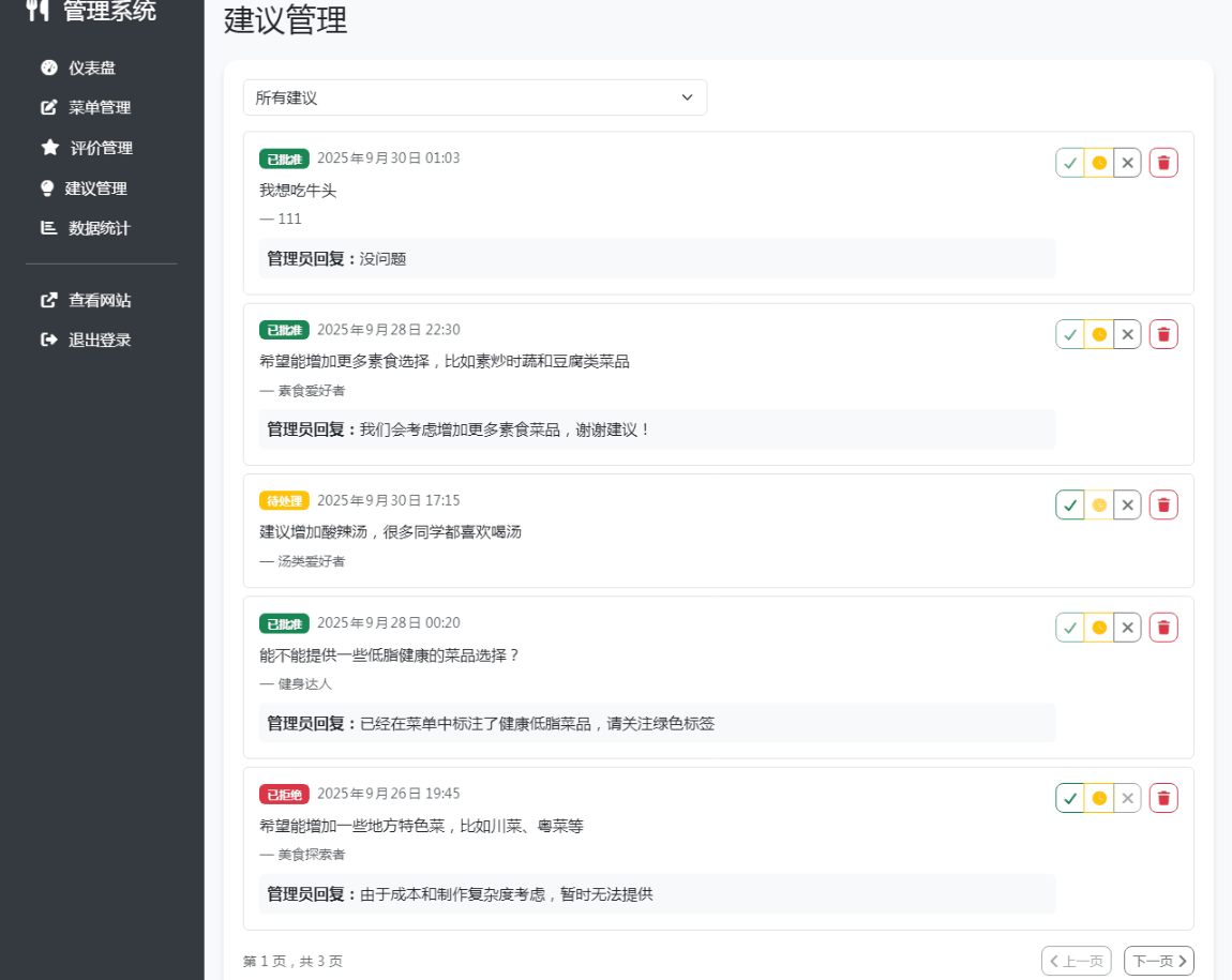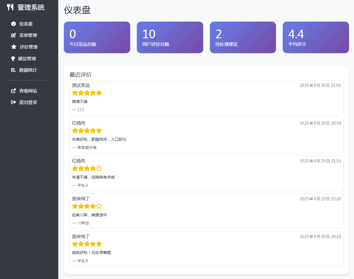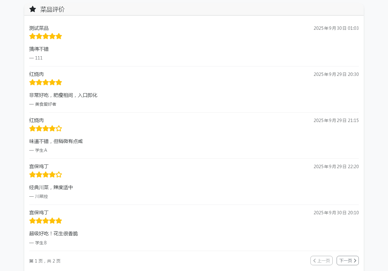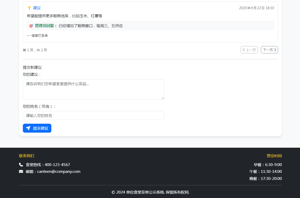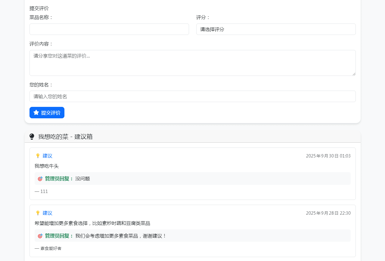单位餐厅食谱菜单公示带评论系统资源介绍