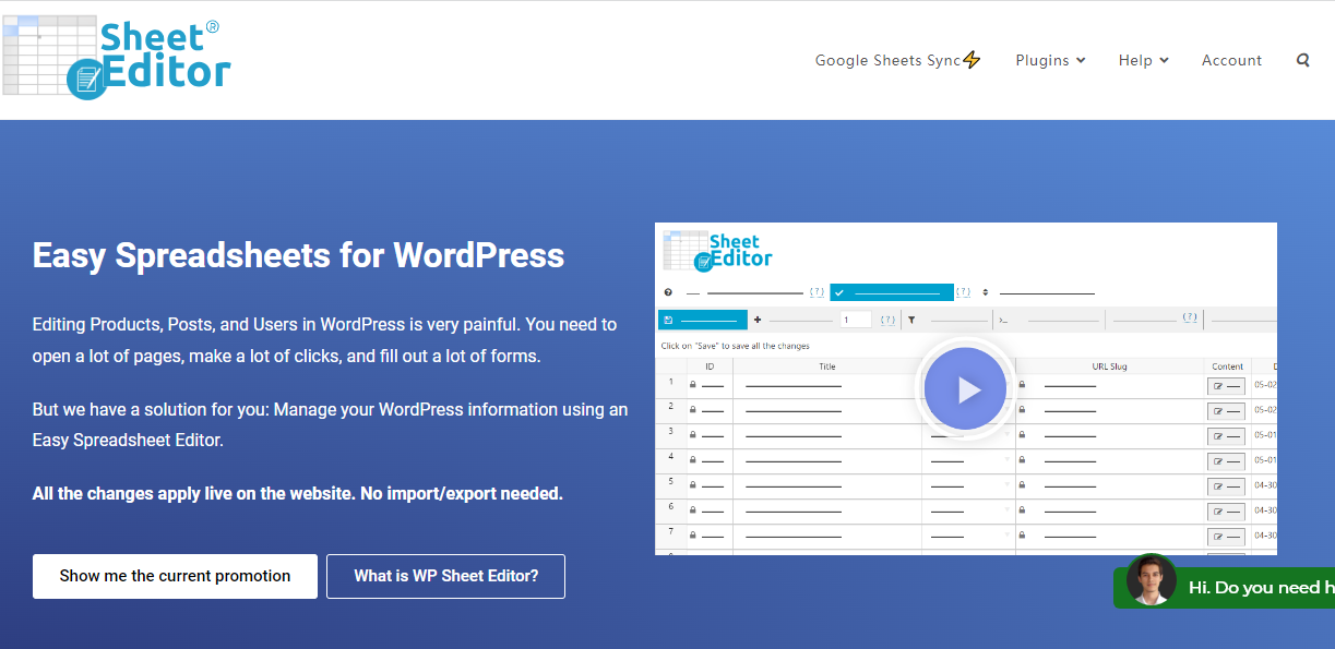 WP Sheet Editor 是一款嵌入 WordPress 的电子表格编辑器。用户打开电子表格,即可查看所有信息,还能实时编辑数十、数百甚至数千个项目,尽享电子表格编辑器的全部优势。有了它,用户无需再浪费时间逐个编辑产品,也无需再忍受普通编辑器的缓慢速度以及导入问题的困扰。