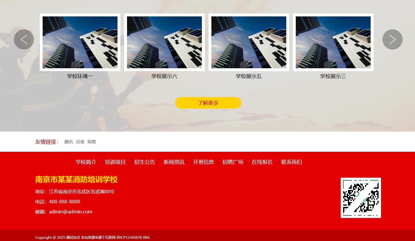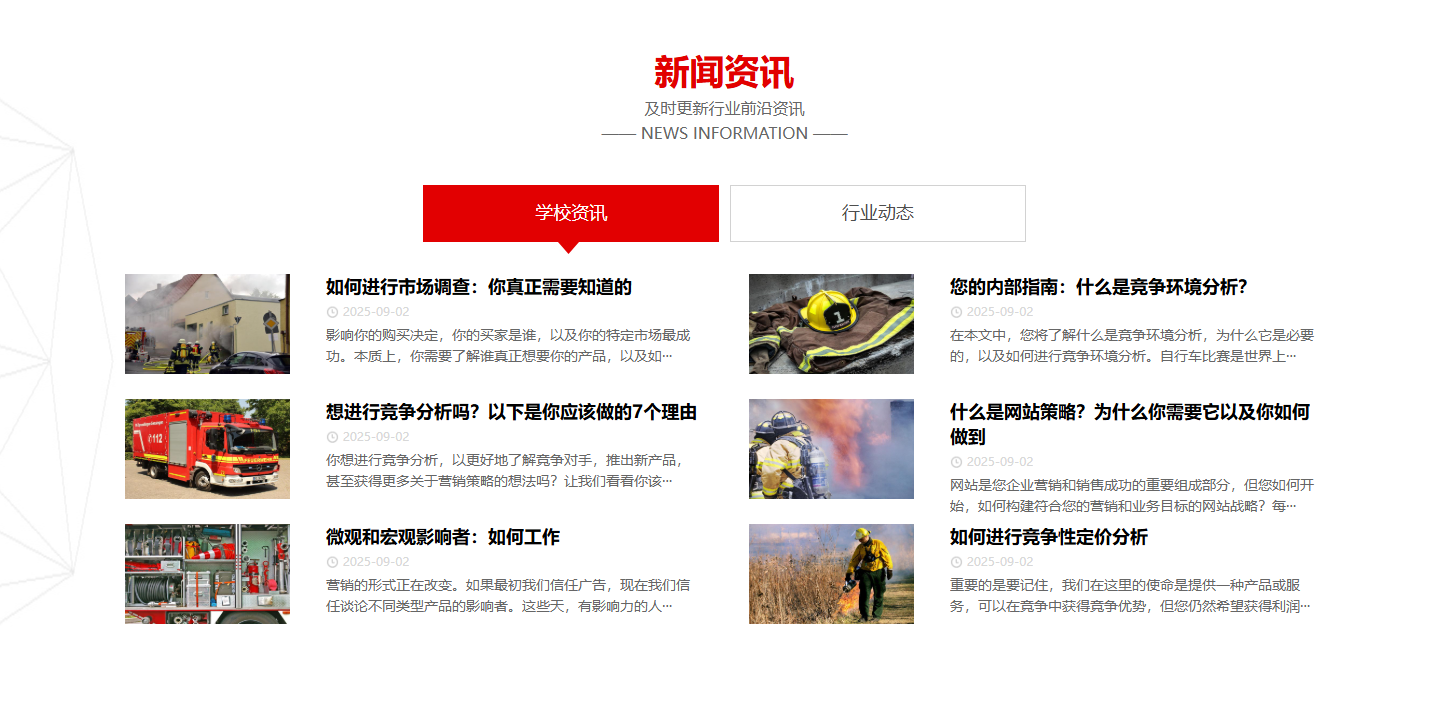 此为PbootCMS内核开发的消防培训网站模板,PC与WAP端数据同步,支持自定义SEO。代码精简无冗余,有自适应结构与全面教程。后台修改信息便捷,安全稳定快速,助培训机构低成本获取源源不断订单。