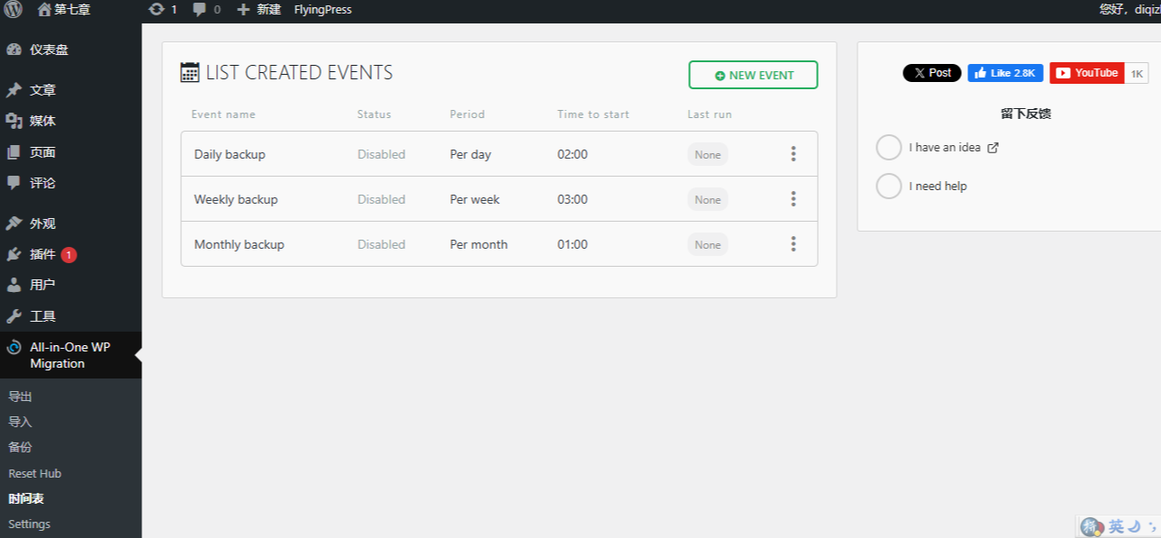 - 轻松迁移:单击即可导出整个网站,包含数据库、媒体、主题和插件。