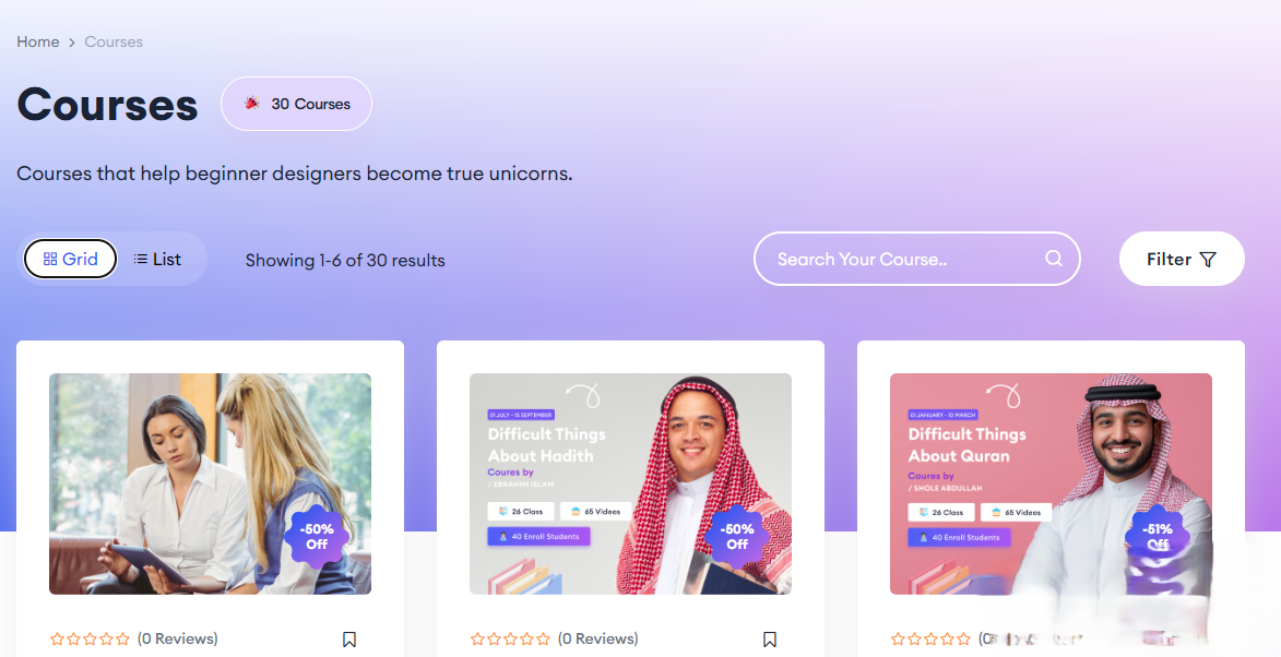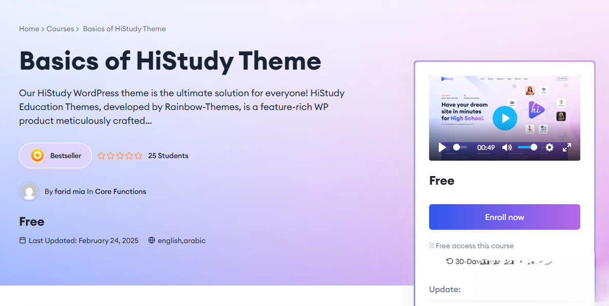 HiStudy 主题与 Tutor LMS 课程插件程序完全兼容。